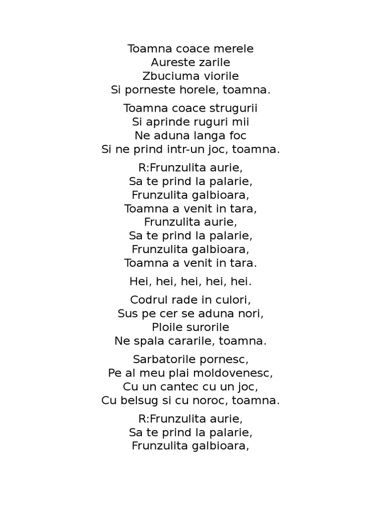 A venit toamna versuri. A venit toamna acopera mi inima cu ceva cu umbra unui copac sau mai bine cu umbra ta. Mă tem că n am să te mai văd uneori că or să mi crească aripi ascuţite până la nori că ai să te ascunzi într un ochi străin şi el o să se nchidă cu o frunză de pelin. Alex barabas 57 678 views. Paula rotaru toamna.