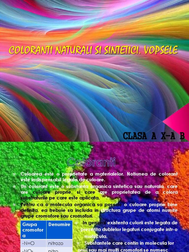 Colorantii Naturali Si Sintetici Chimistii De La C N I V