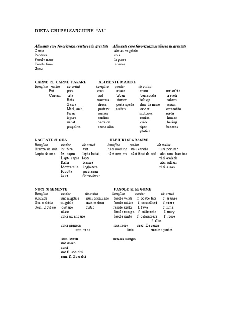 Dieta Grupei Sanguine A2