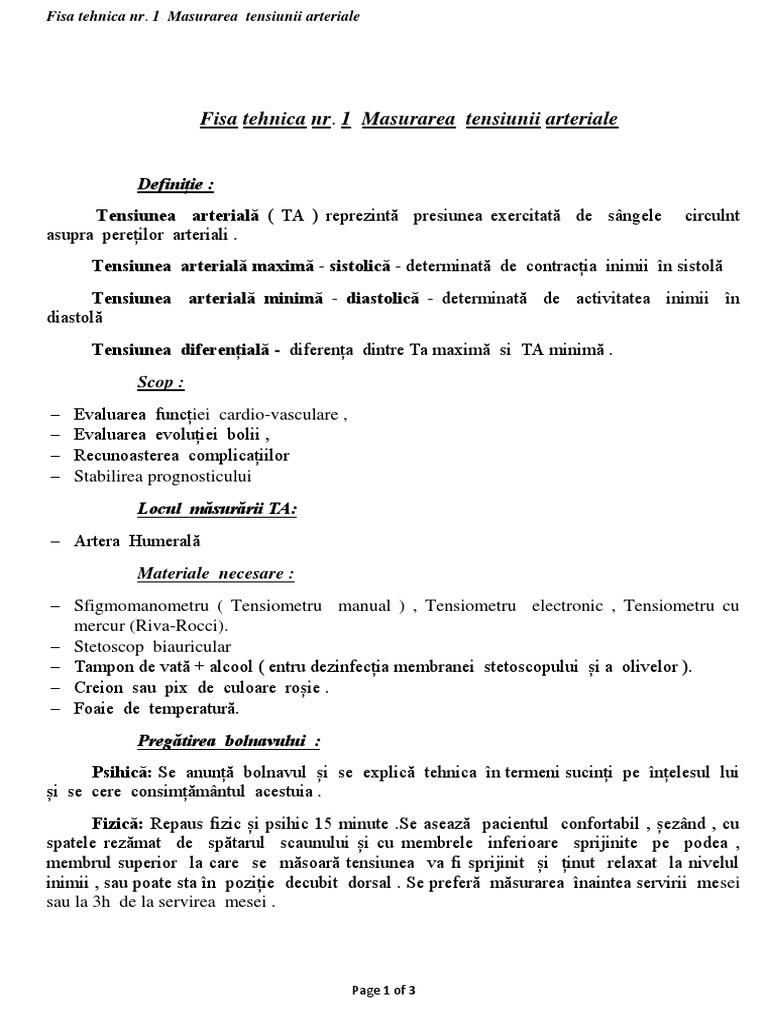 Fisa Tehnica Nr 1 Masurarea Tensiunii Arteriale Docx
