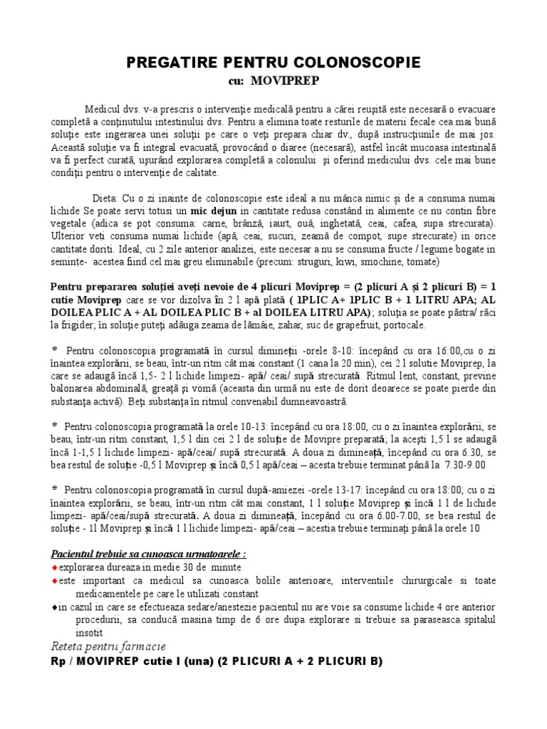 Pregatire Pentru Colonoscopie Procto Colonoscopie Moviprep Ora 16 19 Pdfcereale Se Pot Manca Paste Fainoase Supe Cu Galusti Sau Taietei Lactate Branzeturi Ou Carne In Cantitate Mica Pdf Document