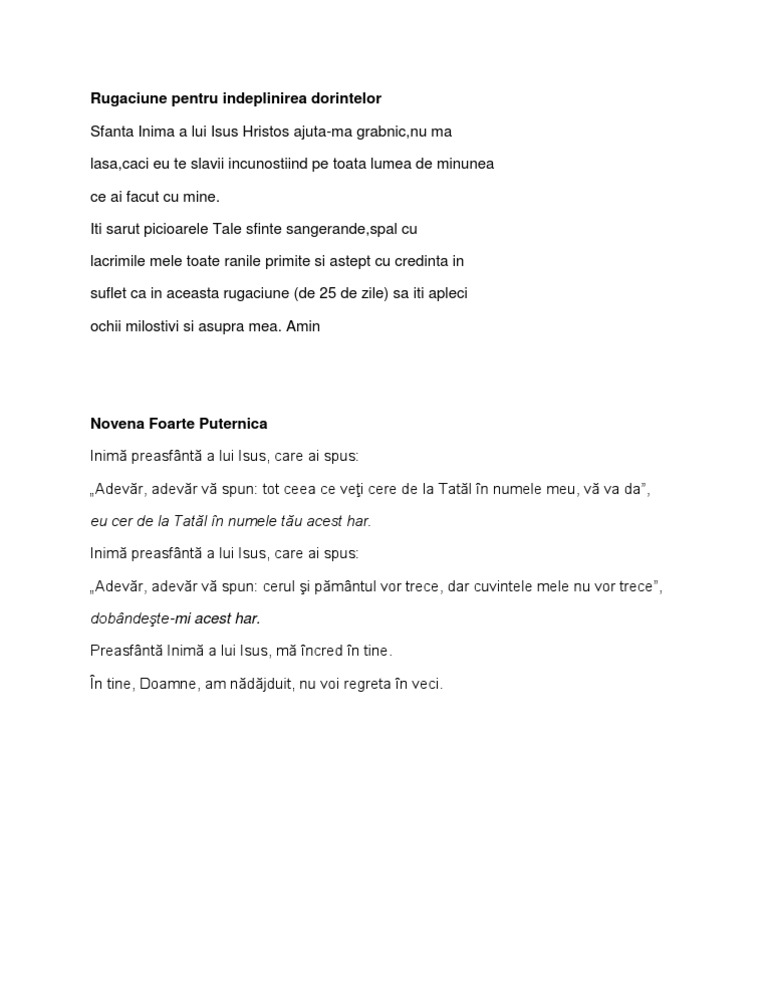 Sfântă maria mă îndrept plin de încredere către tine cerându ți ajutor cred cu tărie că mă vei asculta în necazul meu și mă vei. Se rostește în special atunci când dorința se referă la un necaz pe care vrei să l depășești oricât de mic sau de mare ar fi acesta. 5 rugăciuni pentru îndeplinirea dorințelor. Una dintre cele mai puternice rugăciuni pentru îndeplinirea dorințelor se îndreaptă către sfânta maică a domnului nostru iisus hristos și este bine să fie spusă în fața unei icoane a fecioarei maria cu o lumânare sfințită în mână.