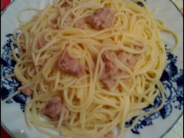 Spaghete cu ton maruntit. Se mai amesteca 1 2 minute timp in care se potriveste de sare si piper dupa gust apoi se ia de pe foc. Ingredientele costa doar 40 de lei. Spaghete cu ton o reteta cu care nu dai gres indiferent de musafir. Ati cumparat un pachet de spaghete si vreti sa incercati o reteta noua.