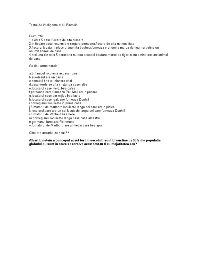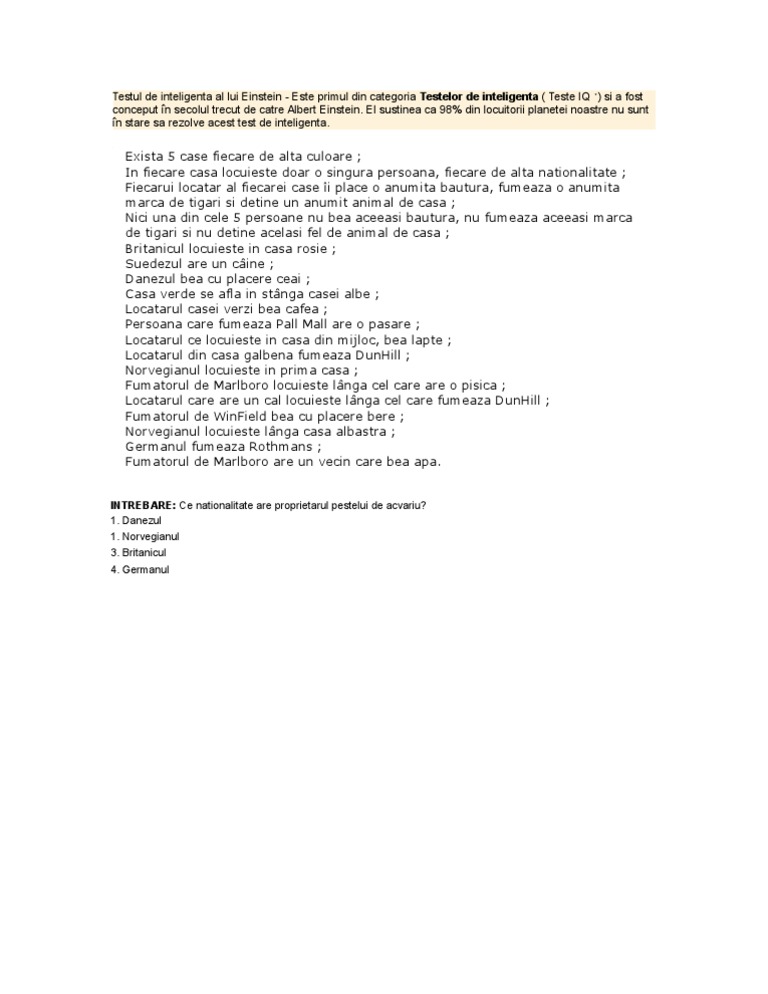 Test De Inteligenta Testul Lui Albert Einstein Tu Poti Sa Il Rezolvi