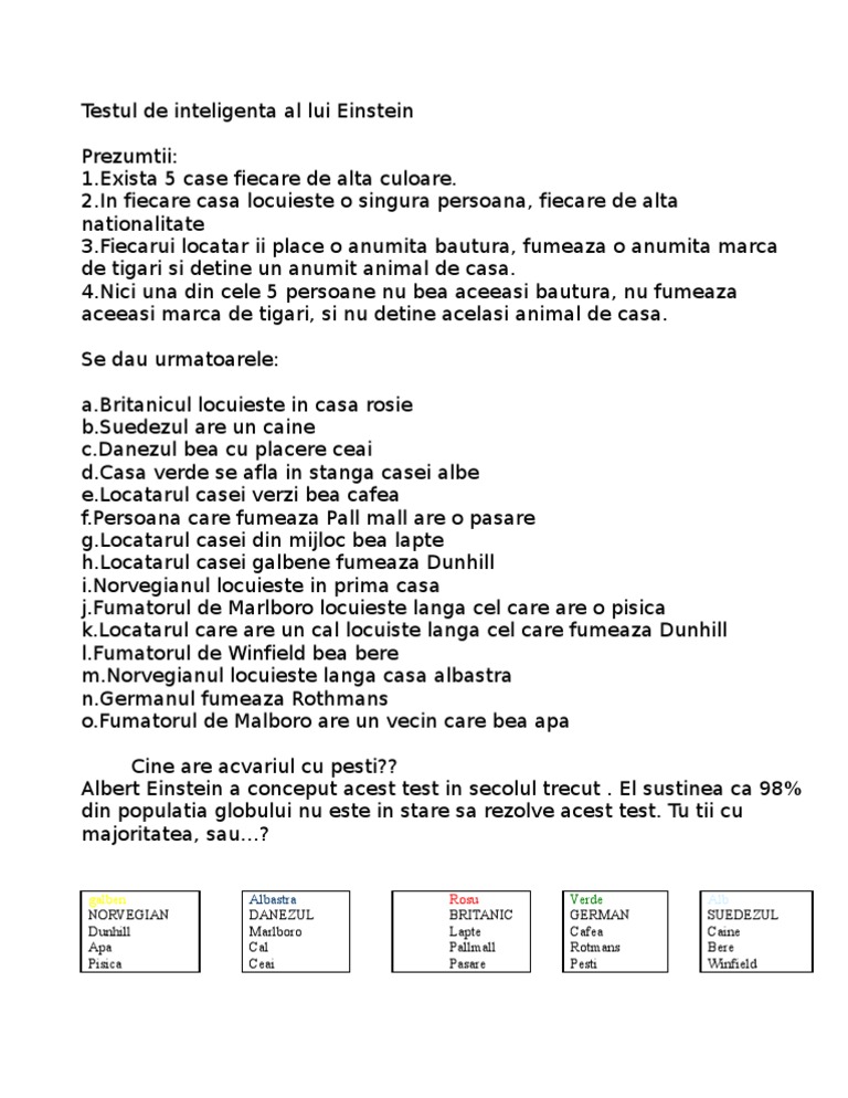 Testul De Inteligență Al Lui Einstein Rezolvare