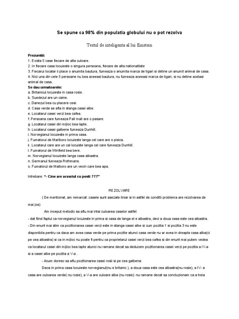 Testul De Inteligenţă Al Lui Einstein Rezolvarea Ecuaţiei