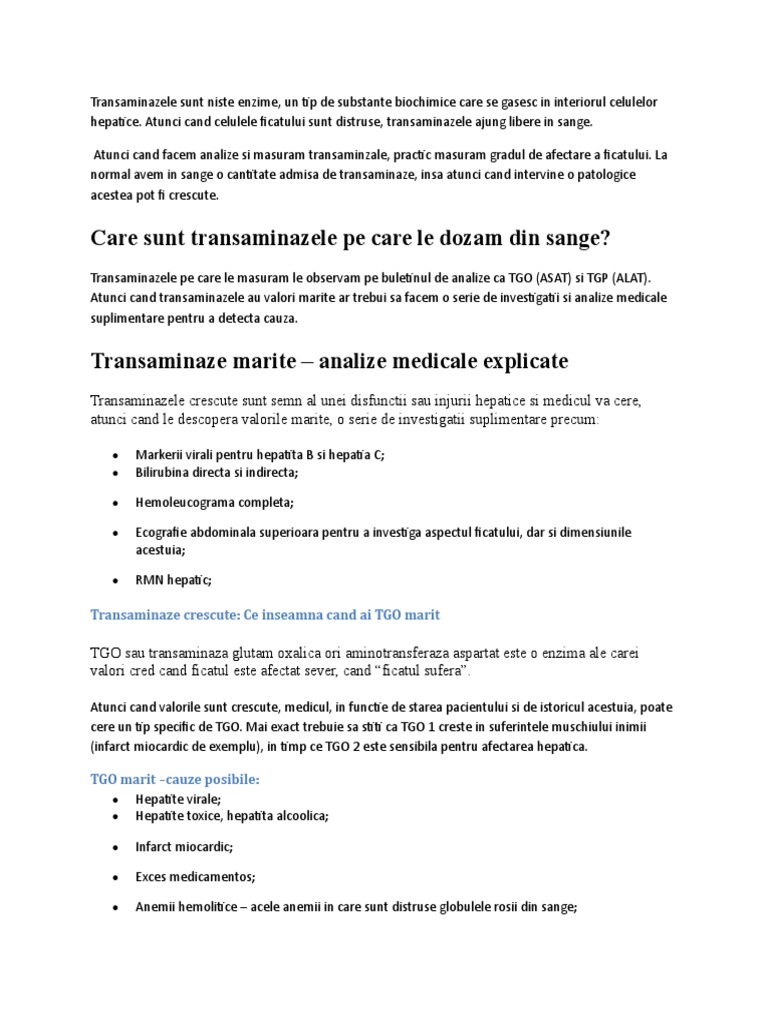 Enzimele Hepatice Ce Sunt și Cand Sunt Crescute