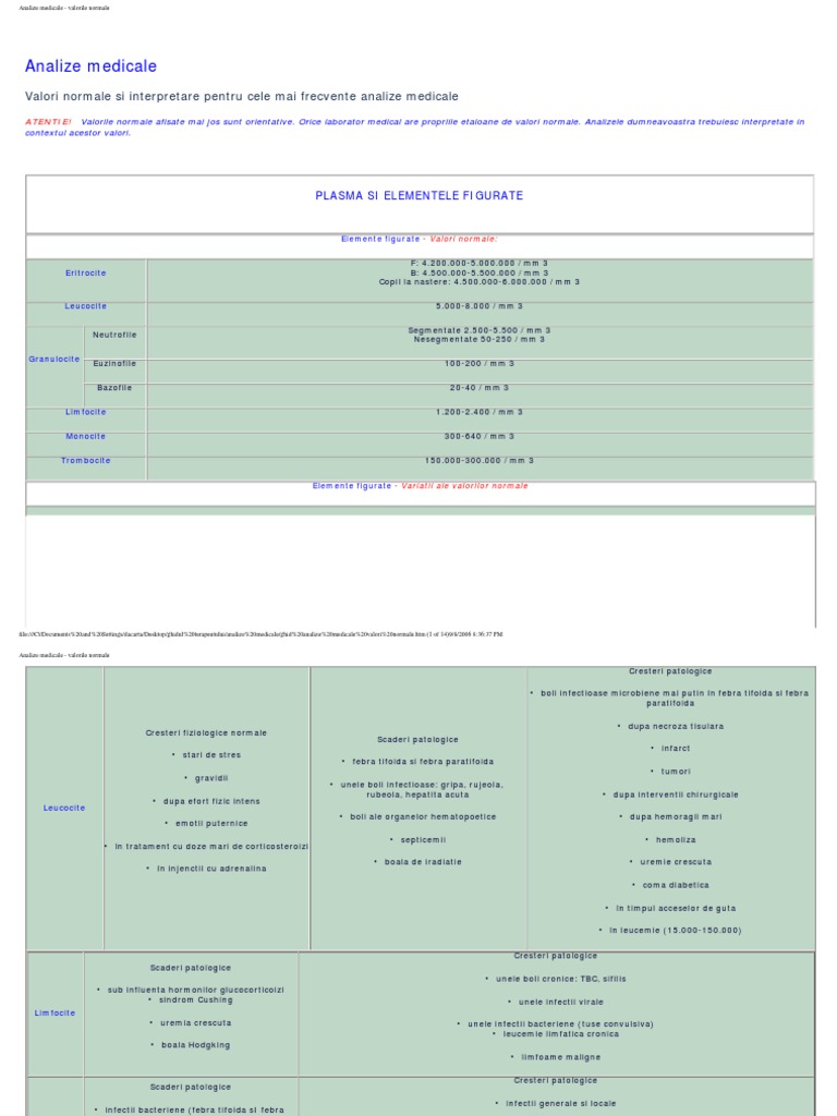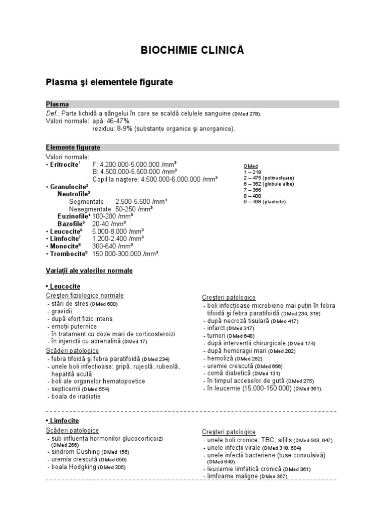 Biochimie Clinica Sange Valori Normale Si Variatii Fiziopatologice