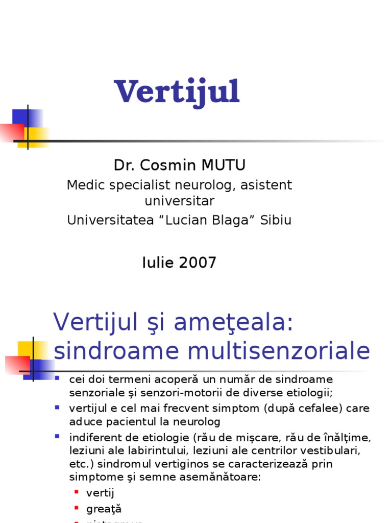 Sindromul Vertiginos Centrul Medical Medsan
